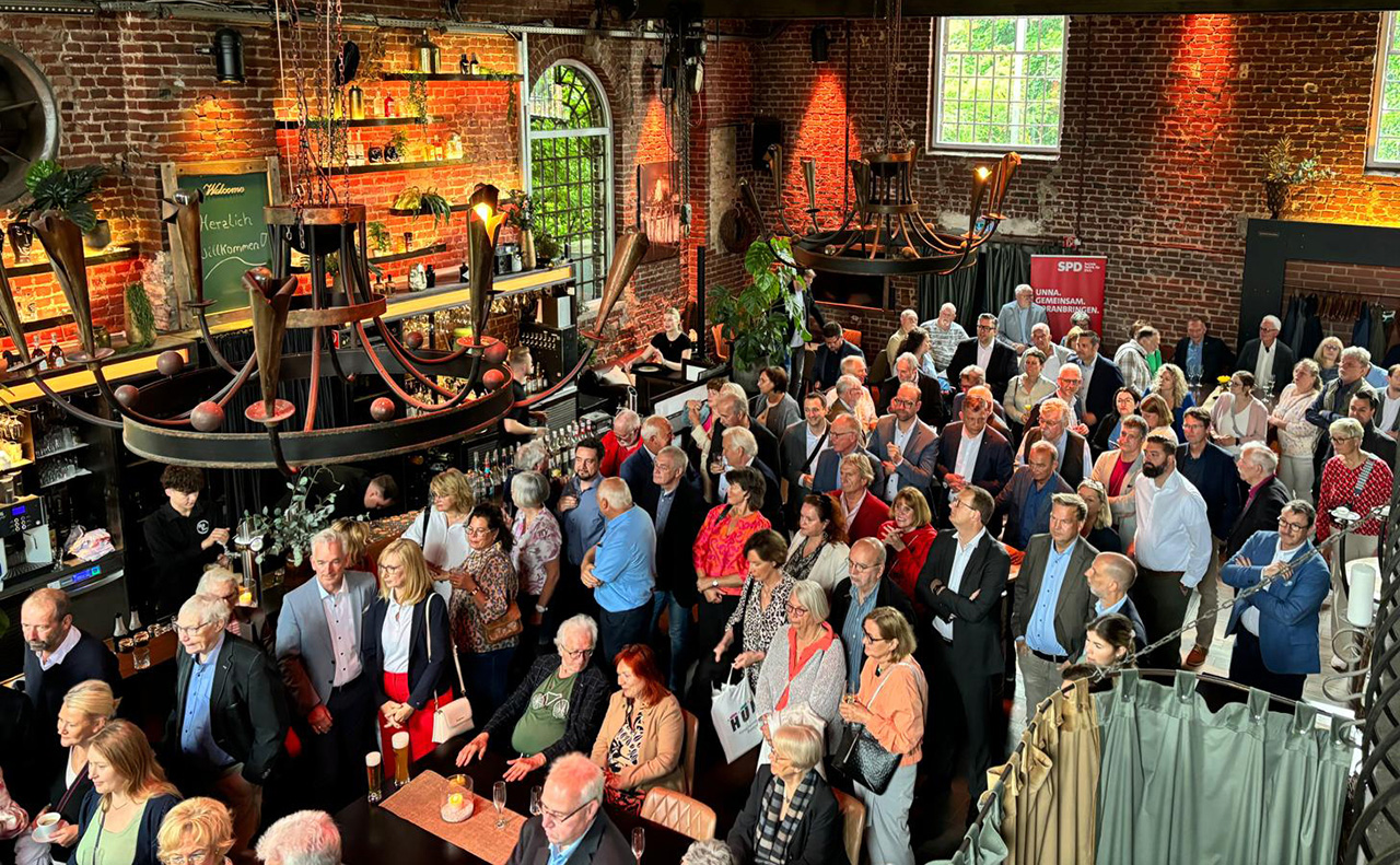 Viele gute Gespräche in schöner Atmosphäre SPD-Empfang mit mehr als 200 Gästen 17. Juni 2024 Viele gute Gespräche und Begegnungen in schöner Atmosphäre: Mehr als 200 Gäste kamen zum Frühjahrsempfang der SPD Unna in die Neue Schmiede. Es waren Vertreterinnen und Vertreter aus den unterschiedlichen Vereinen, Parteien, Verwaltungen, Unternehmen, Kirchen, Wohlfahrtsverbänden, Gewerkschaften, IHK und vielen anderen Organisationen, die sich im Haupt- und Ehrenamt für Stadt und Region engagieren. Bereits zum zweiten Mal fand dieses neue Format statt. Bei so viel Zuspruch ist klar: Fortsetzung folgt 2025.Sebastian Laaser, Vorsitzender der SPD Unna und der SPD-Fraktion im Rat der Kreisstadt Unna nutzte seine Rede zum einen, um auf kritische Fragen einzugehen, die sich jede demokratische Partei nach den Ergebnissen der Europawahl stellen sollte. Zum anderen warf er einen Blick auf kommunalpolitische Herausforderungen, für die zeitnah und gemeinsam Lösungen gefunden werden müssen – vom Kita- und OGS-Ausbau bis hin zur Schaffung ausreichender Schwimmflächen. Hier die Rede im Wortlaut:Meine sehr geehrten Damen und Herren,an die Mitglieder meiner Partei im Raum –liebe Genossinnen und Genossen,ich darf Sie und euch ganz herzlich im Namen der SPD Unna begrüßen. Wir haben erneut zu einem Frühjahrsempfang hier in die Neue Schmiede eingeladen, um in schöner und lockerer Atmosphäre abseits des Alltags miteinander ins Gespräch zu kommen. Nachdem die Premiere dieses Formats im vergangenen Jahr viel Lob gefunden hat, wollen wir es beibehalten und damit eine neue Tradition begründen. Wir sehen auch an dieser Stelle: Es lohnt sich, alte Pfade zu verlassen. Veränderungen bringen frischen Wind, neue Erfahrungen und Perspektiven. Ein herzliches Dankeschön geht an Jörg Budde, der uns musikalisch durch den Vormittag begleitet.Ich freue mich, heute zahlreiche Vertreterinnen und Vertreter aus unterschiedlichen Vereinen, Parteien, Verwaltungen, Unternehmen, Kirchen, Wohlfahrtsverbänden, Gewerkschaften, IHK und vielen anderen Organisationen willkommen zu heißen.Sie alle gehören zu den Menschen, die sich an vielen Stellen und unermüdlich für unsere Stadt und unsere Region einsetzen – sowohl im Ehrenamt als auch im Hauptamt. Sie tun Dienst im Feuer- und Rettungswesen. Sie organisieren Freizeitangebote für Kinder in Sport und Kultur. Sie sammeln Spenden für Menschen in Not. Sie engagieren sich für eine funktionierende Wirtschaft, gute Arbeitsbedingungen, soziale Gerechtigkeit, Klimaschutz, Integration, Frieden und Freiheit – eben für ein funktionierendes Gemeinwesen. Dafür sage ich Ihnen allen ein herzliches Dankeschön.Erlauben Sie mir auch, dass ich an dieser Stelle einige von Ihnen ganz besonders begrüße: Lieber Oliver Kaczmarek, lieber Hartmut Ganzke, schön dass ihr als unsere Abgeordneten in Bundestag und Landtag heute bei uns seid.Ebenso begrüße ich herzlich unseren stellvertretenden Landrat Martin Wiggermann, unsere ehemaligen Bürgermeister Wilhelm Dördelmann, Werner Kolter und Volker Weidner sowie unsere stellvertretenden Bürgermeisterinnen und Bürgermeister Simone Hackenberg, Gerhard Meyer und Renate Nick.Ich begrüße die Kolleginnen und Kollegen aus den anderen Ratsfraktionen herzlich.Ich begrüße von der Stadtverwaltung Unna den Beigeordneten Markus von der Heide und Kämmerer Michael Strecker. Kreisdirektor Mike Janke wird später zu uns stoßen. Landrat Mario Löhr darf ich urlaubsbedingt entschuldigen.Herrn Bürgermeister Wigant darf ich ebenfalls entschuldigen. Eigentlich aus einem schönen Grund. Er hätte an diesem Wochenende gemeinsam mit einer Delegation am Stadtfest unserer Partnerstadt Döbeln teilgenommen, um das 35-jährige Bestehen unserer Städtepartnerschaft zu feiern. Sie haben es sicherlich alle mitbekommen: Die Feierlichkeiten wurden abgesagt, weil eine schreckliche Tat alles überschattet: der gewaltsame Tod der neunjährigen Valeriia, deren Leiche am Dienstag gefunden worden ist. Am Freitag hat eine bewegende Trauerfeier unter großer Anteilnahme der Bevölkerung stattgefunden – ich empfand es als aufrichtiges und partnerschaftliches Zeichen, dass Herr Bürgermeister Wigant an der Seite seines Döbelner Amtskollegen teilgenommen hat und somit unser aller Solidarität für die Familie der kleinen Valeriia ausgedrückt hat.Meine sehr geehrten Damen und Herren,ich habe es gerade bereits gesagt: Das Fundament, auf dem wir alle stehen, ist unser Gemeinsinn und unser Zusammenhalt. Nur dieses Fundament ist solide und stark genug, um uns durch krisenbehaftete Zeiten zu tragen.Sie alle, die Tag für Tag mit Ihrer Arbeit diese starke Gemeinschaft bilden, leisten damit auch einen unschätzbaren Beitrag zur Sicherung unserer Demokratie. Und das ist leider notwendiger denn je, wie uns die Europawahl eindrücklich gezeigt hat. Die Zuwächse für die rechtspopulistischen Parteien sind immens. Die Demokratie zu schützen und zu leben, ist komplizierter geworden – ebenso wie die Herausforderungen komplexer geworden sind, die es zu meistern gilt.Die Rahmenbedingungen haben sich rasant weiterentwickelt in den vergangenen Jahren: Da sind die Auswirkungen der Pandemie und des russischen Angriffskriegs, die wir deutlich spüren. Da sind die strukturellen Veränderungen der Arbeitswelt, die Folgen der demografischen Entwicklung, die beschleunigten Kommunikations- und Informationswege und die Verhärtung der Integrationsprobleme, die unsere Lebenswirklichkeit verändern. Diese Entwicklungen müssen politisch und gesellschaftlich eingeordnet, gestaltet und vor allem erklärt werden. Die drei Parteien der Ampelregierung, aber auch alle anderen demokratischen Parteien müssen sich fragen, … ob wir monatelange Diskussionen um die wirklich gesellschaftlich relevanten Themen führen?ob wir eine Sprache sprechen, die die Menschen erreicht?ob wir die richtigen Formate dafür nutzen?also am Ende die Frage, nehmen wir die Menschen richtig mit und ernst?Sie merken viel